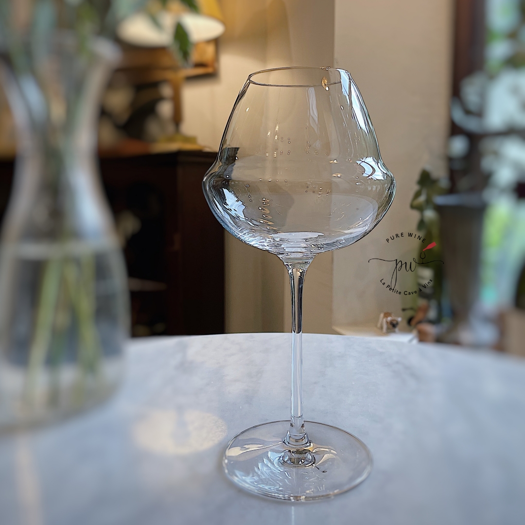 法國酒杯 Lehmann 與侍酒大師 Gerard Basset 的世紀之作。侍酒大師重新設計兩個絕妙的弧度,展現葡萄釀酒的特性及酒體的本質。下方弧度盡情搖晃,完全激盪出酒體的圓融、和諧及豐富;而上方的弧度則是將熟成的狀態優雅地送入鼻口之中。