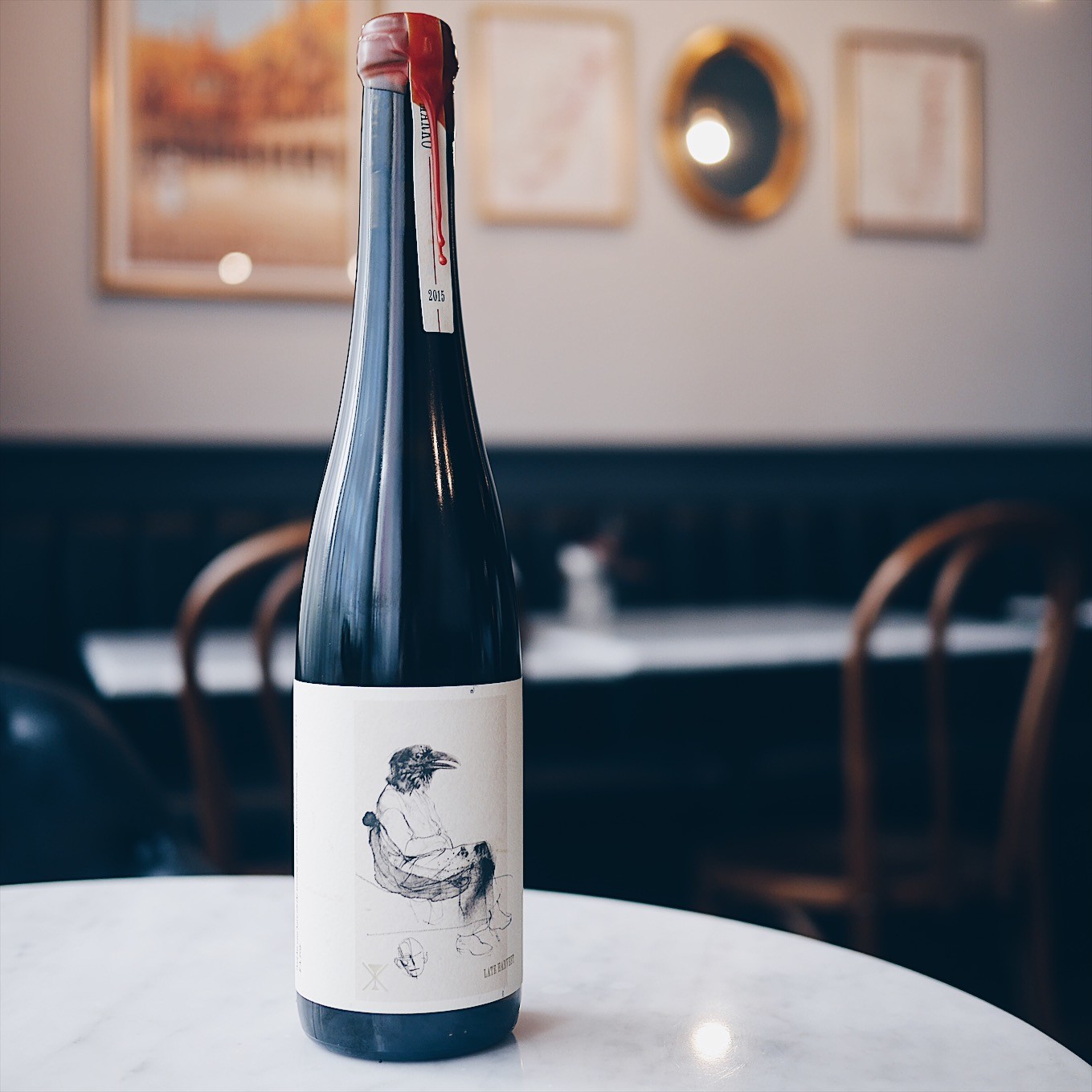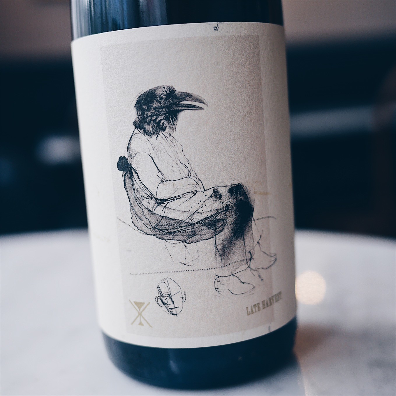 酒標上的圖案靈感來自於著名美國詩人Edgar Allan Poe的烏鴉詩《The Raven》: 「And his eyes have all the seeming of a demon’s that is dreaming .牠的眼神帶了所有惡魔似的迷離」。有別於詩裡的渡鴉,像是一群烏鴉圍繞在Izkiota Txikia葡萄園,酒標上等待的烏鴉人被比喻為晚收葡萄酒緩慢地自成一格的瘋狂,沙漏更象徵對海洋的親近性(葡萄園只距離海邊8公里)