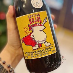 由於近年喝薄酒萊的人越來越少,酒標刻意以一種「薄酒萊起義革命」的風格,由虛構的薄酒萊隊長,身穿滑稽的披風、皮靴與尿布,帶領大家前往薄酒萊的應允之地,一起來喝薄酒萊吧!