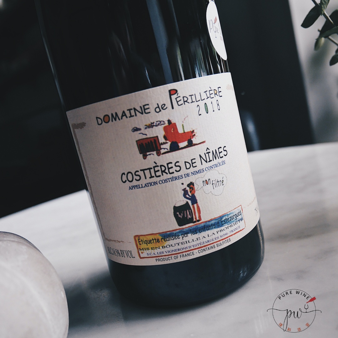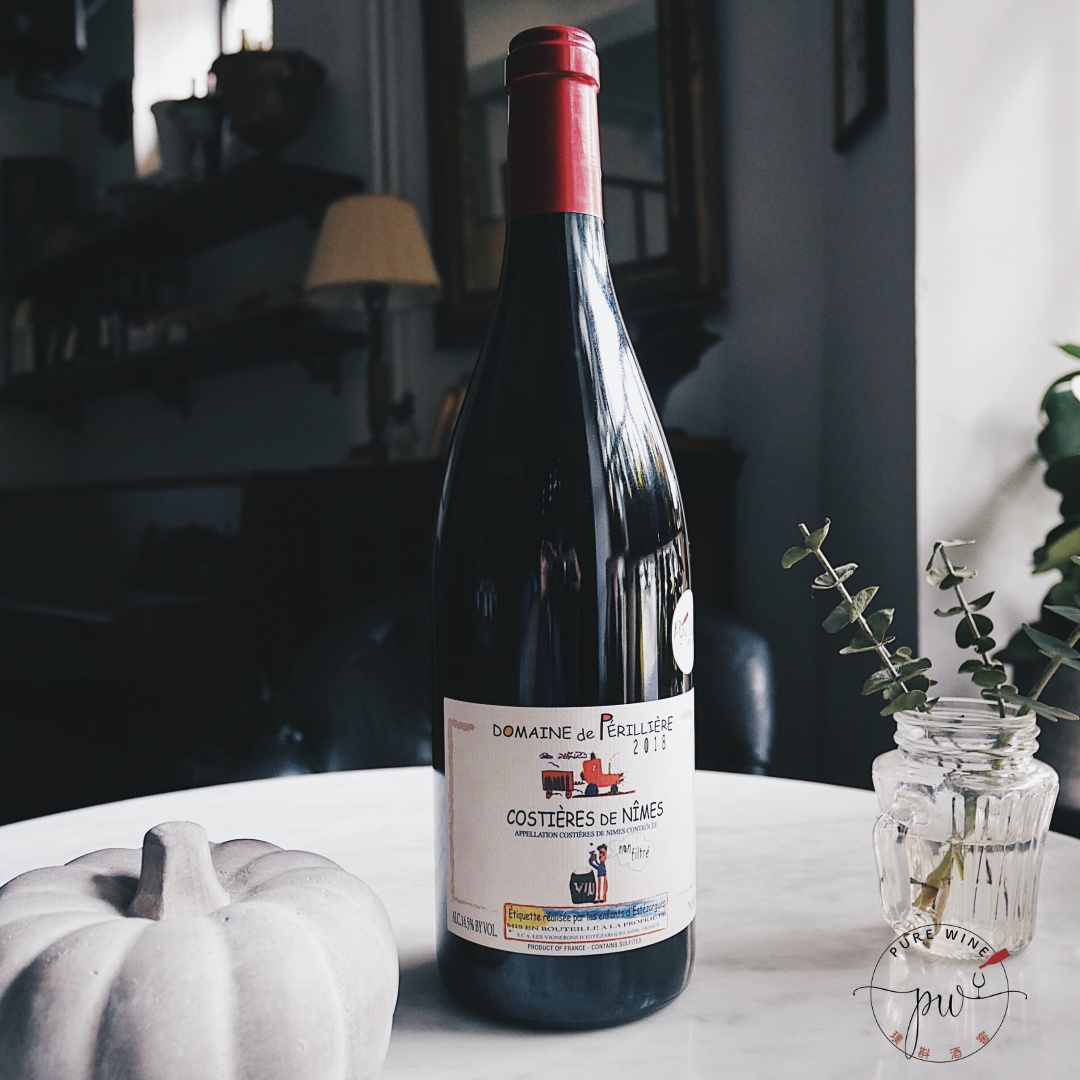 來自南法Nimes附近的單一葡萄園,手工採收後全去梗,在水泥槽內發酵,再移往舊橡木桶內培醞10個月後裝瓶。豐富的草本、紫羅蘭、藍莓果醬、草莓、櫻桃與木質香氣等,口感結實,單寧明顯,尾醞細長。