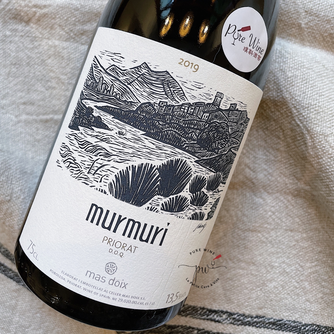 Murmuri(輕聲細語)是Mas Doix杜瓦士酒莊推出的第一款白葡萄酒,酒標來自Josep Subirats於1985年在Siurana河雕刻的創作。Doix酒莊的葡萄園位於海拔350-500公尺的陡坡間,特殊的板岩地質(Licorella)更凸顯這裡獨樹一格的風土。葡萄樹的樹齡介於80到110歲之間,每一株的葡萄屬產量更是只有400公克如此之少。以20年老Garnacha為主體,加入Macabeo及其他品種混釀,明亮的柑橘黃酒色,圓渾的酒體,多汁奔放的口感,紮實的酸度,香蕉、檸檬、柑橘,如同在山林間串流的小溪,暖暖淡淡的油脂感。年產量2700瓶。