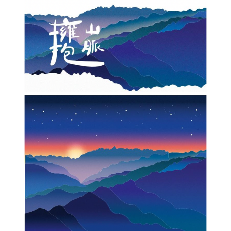以台灣玉山的稜線作為構圖的參考,