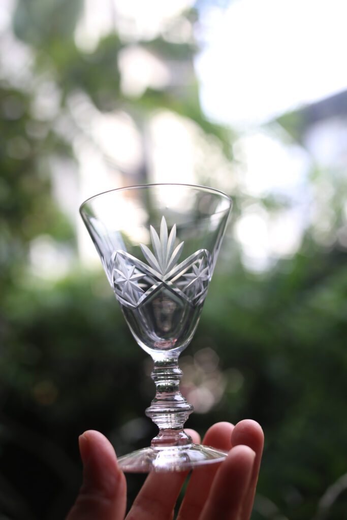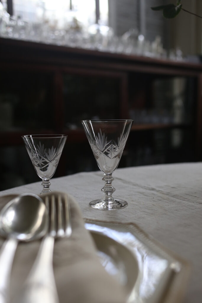 收集各式水晶杯,每天盛裝不同的心情享用。水晶的透徹,隨著光線折射的光影變化,綺麗美麗的影子投射在桌面好詩意,用來盛裝一杯葡萄酒或是非酒精飲料,甚至是幾顆櫻桃佐香草冰淇淋、水果優格,請朋友到家裡聚餐時擺上,餐桌頓時變了優雅起來。倒上一杯葡萄酒,喝下一段屬於法國的老時光。
