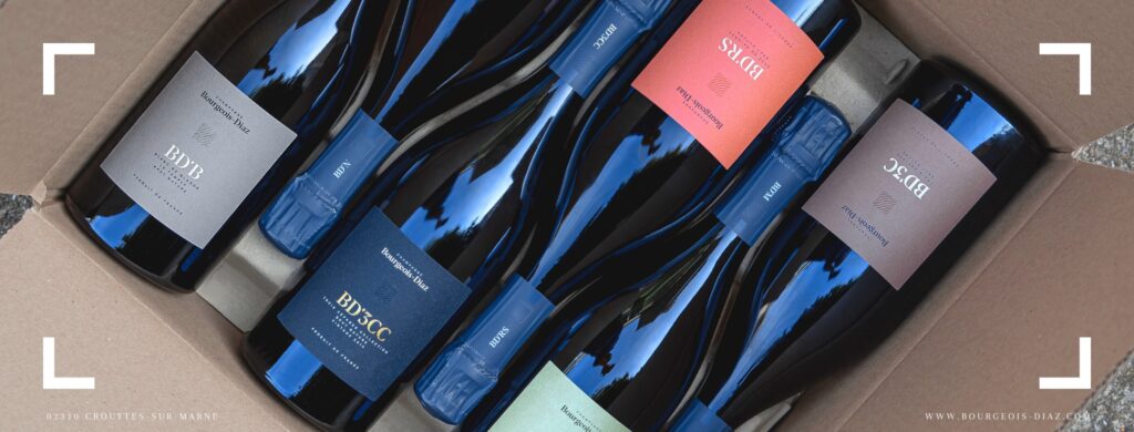 BD香檳屬小農香檳,葡萄果實全部來自自有葡萄園,目前酒莊擁有極小面積的6.5公頃葡萄園,其中3.5公頃種植Pinot Meunieur、2公頃種植Pinot Noir、1公頃種植Chardonnay,葡萄園種植完全不使用殺蟲劑、化學肥料等會造成土壤負擔的化學產品,人工採收後,以垂直壓榨機輕柔搾汁,發酵時不添加任何物質,讓基酒在最無干擾下自行發酵,培醞使用陶甕或橡木桶,所有酒款亦不做任何添糖(dosage)。莊主Jerome為了讓酒標與酒質有更好的呼應,特地請香檳產區當地年輕設計師重新設計酒標,並將酒莊名稱Champagne Bourgerois-Diaz縮寫成BD,且各酒款會以不同縮寫來呈現,如BD’3C指的是以三種葡萄混釀而成的傳統香檳、BD’N代表黑中白香檳、BD’M代表100% Pinot Meunier釀製的香檳、BD’B代表白中白香檳、BD’RS代表粉紅香檳、BD’3CC代表年份香檳,而酒莊亦有一款BD’LP紅酒,極為少見以Pinot Meunier為主的紅酒。
