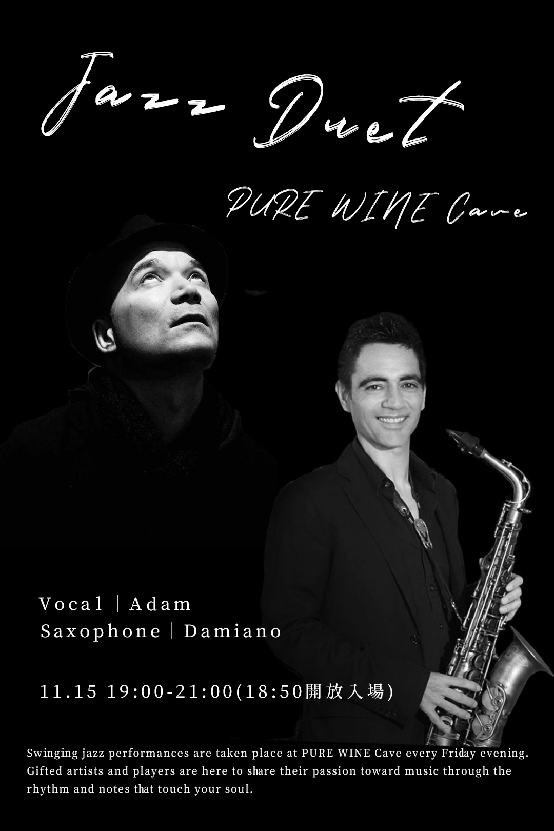PURE WINE的週五Jazz Night,邀請國內外厲害樂手演奏,可能是鋼琴+鼓手、可能是歌手+鋼琴、也可能是鋼琴+Bass手,有時樂手瘋狂召集五位表演者擠在一起,總之就像是國外常見的爵士小酒吧一樣,我們一起欣賞喜歡的音樂,大力鼓掌呼喊叫好,渡過愉快的時光。
