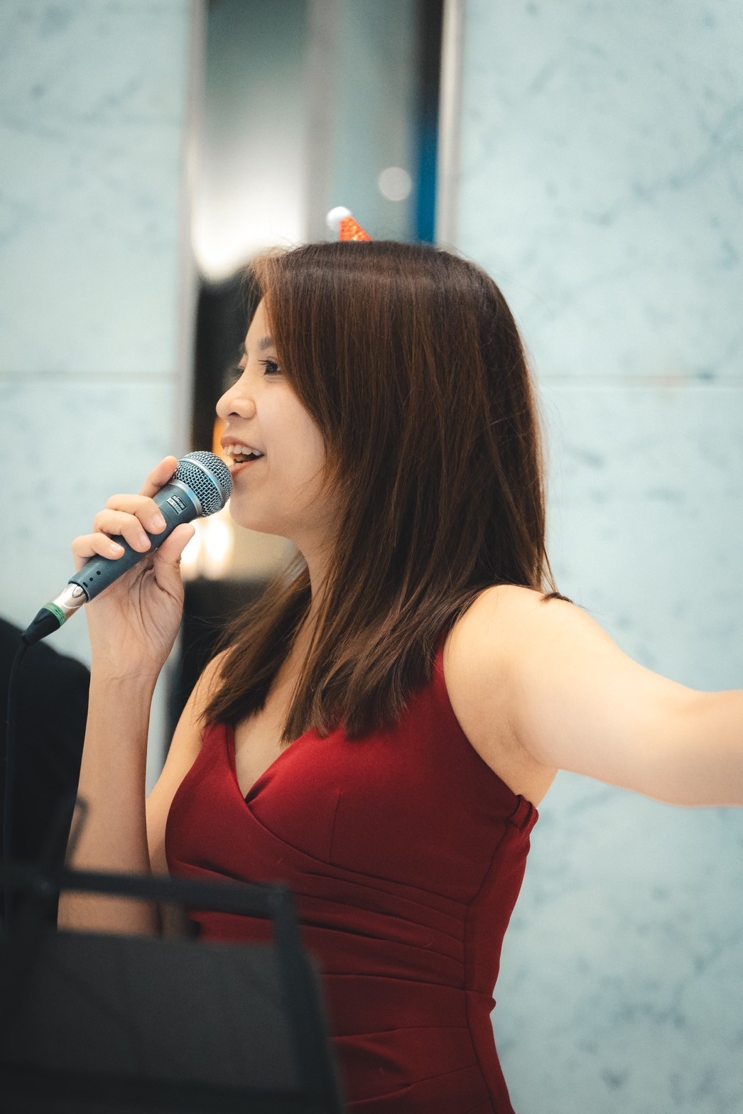 擅長人聲scat即興、對和聲跟節奏律動掌握度高。