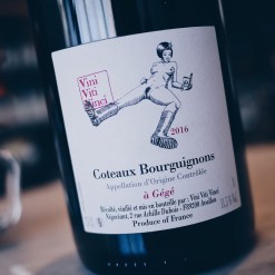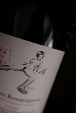 「釀造時無添加物」一直是自然酒最重要的定義,所以又有著「naked wine赤裸葡萄酒」的別名,而裸也是最多自然酒酒標創作的元素之一,但從沒有像Nicolas Vauthier這款,將「裸」用最生活化的方式自在呈現。這款酒挑選自Chablis南方的gamay葡萄園,手工採收後,不去梗,以半二氧化碳浸皮法的方式發酵,在橡木桶內陳放10個月後裝瓶,酸度明顯,果感厚實,豐富的櫻桃、酸梅、草莓、泡泡糖、橡木、榛果等香氣,純淨自然的口感。