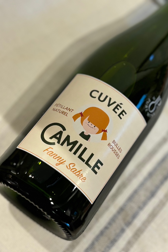 以傳統氣泡酒(Pet-Nat)的釀法,手工採收黑皮諾果實後,先輕柔榨汁,在不鏽鋼桶內以天然酵母發酵,發酵中途即先裝瓶,使葡萄酒在瓶中持續發酵,培醞10個月後再除渣裝瓶。凡妮請設計師畫了好幾款酒標,讓念幼稚園的女兒Camille挑選,Camille毫物遲疑的選了法國復古風格的酒標,她覺得這真的很像她。