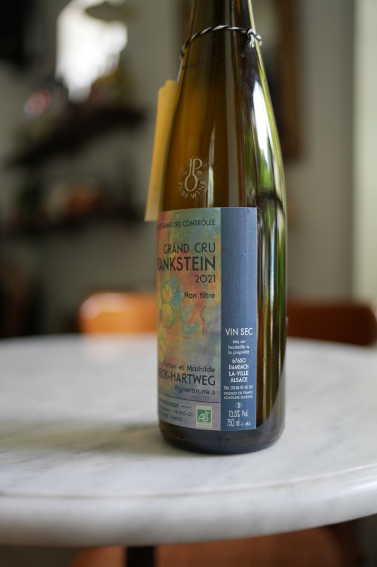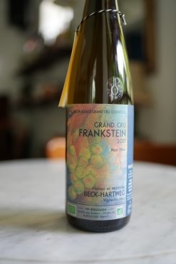 平均樹齡 40 年的 Gewurztraminer、Pinot Gris、Pinot Noir、Riesling,採有機種植於特級園 Frankstein 的 Pflanzer、Frauenberg 地塊(花崗岩、砂⼟)。⼿⼯採收。整串葡萄榨汁。在橡⽊桶中以原⽣酵⺟天然發酵 11 個⽉,於⼤桶中培養。無過濾、澄清,未使⽤⼆氧化硫及其他添加劑。香氣豐富,⼝感飽滿,柑橘類果⽪、檸檬、礦⽯、黃蘋果、杏仁。