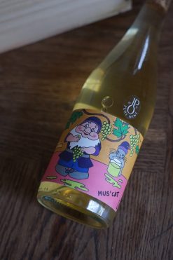 酒標設計的靈感是來自於葡萄品種本身的名字.酒標上可以看到蜜思嘉葡萄,同時也可以看到一隻貓。