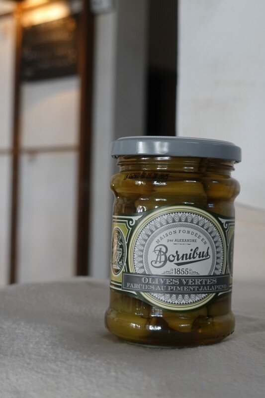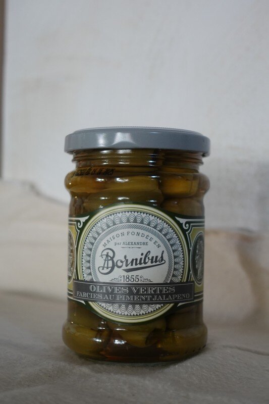 Green Olives stuffed with jalapeno 法國綠橄欖與墨西哥辣椒,結合了去籽橄欖和帶些微辛辣的墨西哥辣椒。非常適合做開胃菜或是搭配料理提升風味層次。