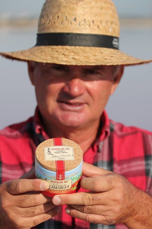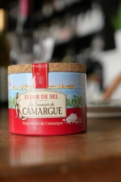 鹽之花是一種如薄冰般飄浮在海面上的白色半透明結晶體,輕微濕潤的質地和灰色和粉紅色的色調。只於每年7月中到8月中收採,成分比一般海鹽精純,但分量極少,只有一般海鹽產量的1/30。平均每50平方公尺的鹽田,才能結晶出不到500克的鹽之花,而且全程必須人手收採,採收過程有如天賜良緣,因此極其珍貴。