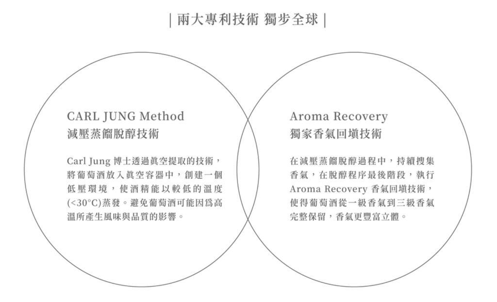 Carl Jung 博士每次看到無法享用葡萄酒的朋友時,總會為他們感到遺憾。「為什麼沒有辦法只享受香氣與口感,不要酒精?這樣所有人不就都能享受大自然餽贈的美好!」但以當時的技術,人們只知道如何釀造葡萄酒,卻不知道如何從酒液中提取酒精。