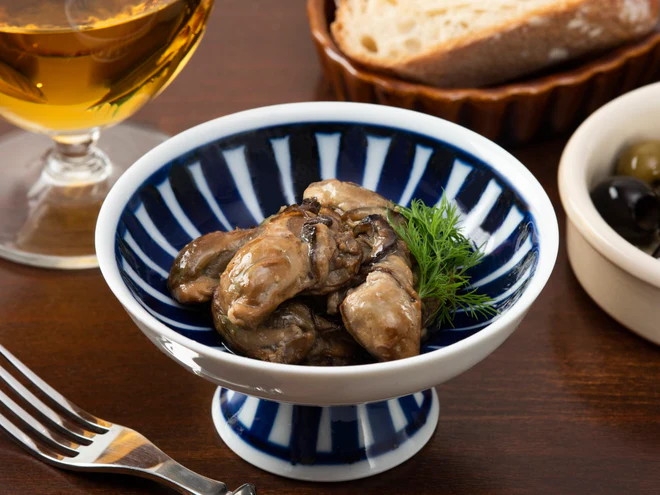 使用廣島海域牡蠣,並以櫻花木熏製,最後加入海藻鹽帶出牡蠣鮮味。開罐可直接食用,或隔水加熱後食用風味更佳,是非常方便的下酒小點。