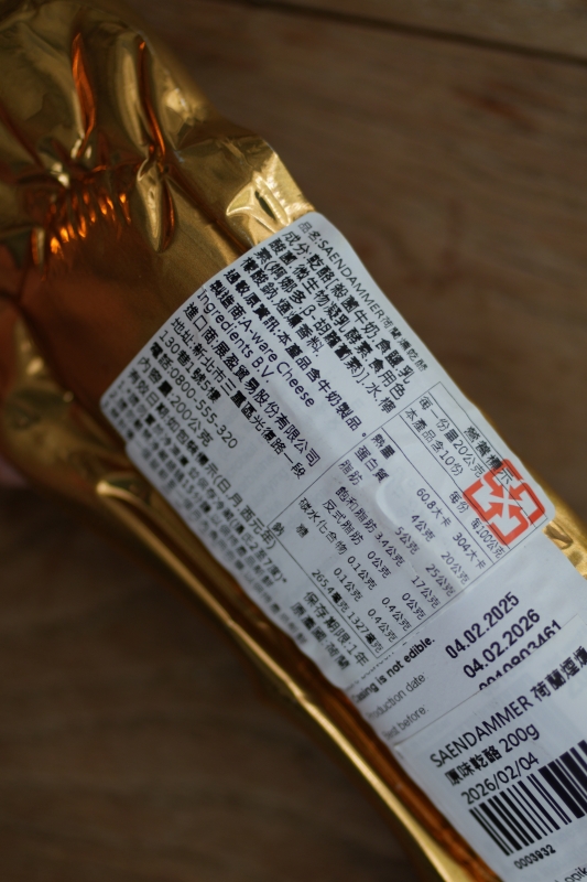 煙燻香料、乾酪【殺菌牛奶、食鹽、乳酸菌、凝乳酵、素食用色素(姛娜多、B-胡蘿蔔素)】、水、奶油、多磷酸鈉、磷酸二氫鈉、玉米澱粉、食鹽