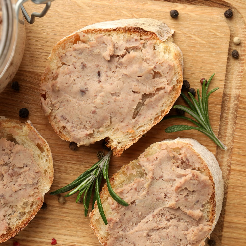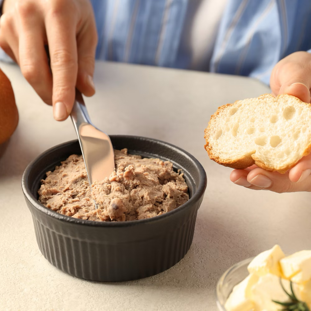 這款鴨雞肝慕斯混合了鴨和雞肝,圓潤而順滑的口感,餘韻散發淡淡酒香,別具風味。可適合直接當作麵包抹醬,也可用於前菜沙拉、小點心,或是搭配主菜、燉飯。