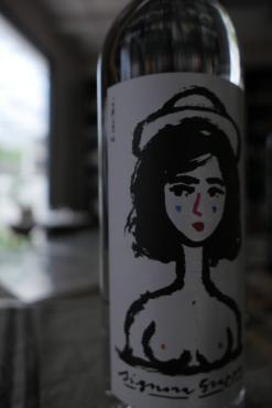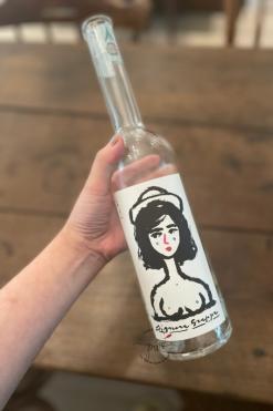培醞不用橡木桶陳年,真誠展現自然派葡萄果實最純粹的香氣,酒色透明潔淨,猶如女神降臨一般,所以莊主Nadia將酒款取名為「Signora Grappa」,直譯為「Miss Grappa渣釀白蘭地小姐」,同時因為Nadia相當謙虛地認為,這款Grappe是她第二次生產,她也還像小孩一般需要時間成長,所以這名稱也帶有稱呼小朋友為小大人時,刻意加上先生、小姐稱謂,所以此款也有「白蘭地女孩」之意。