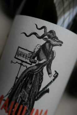磚紅色澤,酒體高瘦,有明顯的單寧感,細膩的礦石、藍莓、桑椹、酸梅、葡萄皮、果梗、蕈菇、濕土地、皮革、咖啡豆、草本與木質香氣等,尾韻典雅,而莊主Mauro在品嚐這款單一園紅酒後,感覺酒質有如一個身材修長的音樂家,正在演奏薩克斯風的美好樂曲,設計師融合了Mauro的感受,再加入葡萄園附近常出沒的山羊元素,進而畫出這與眾不同又迷幻的酒標。