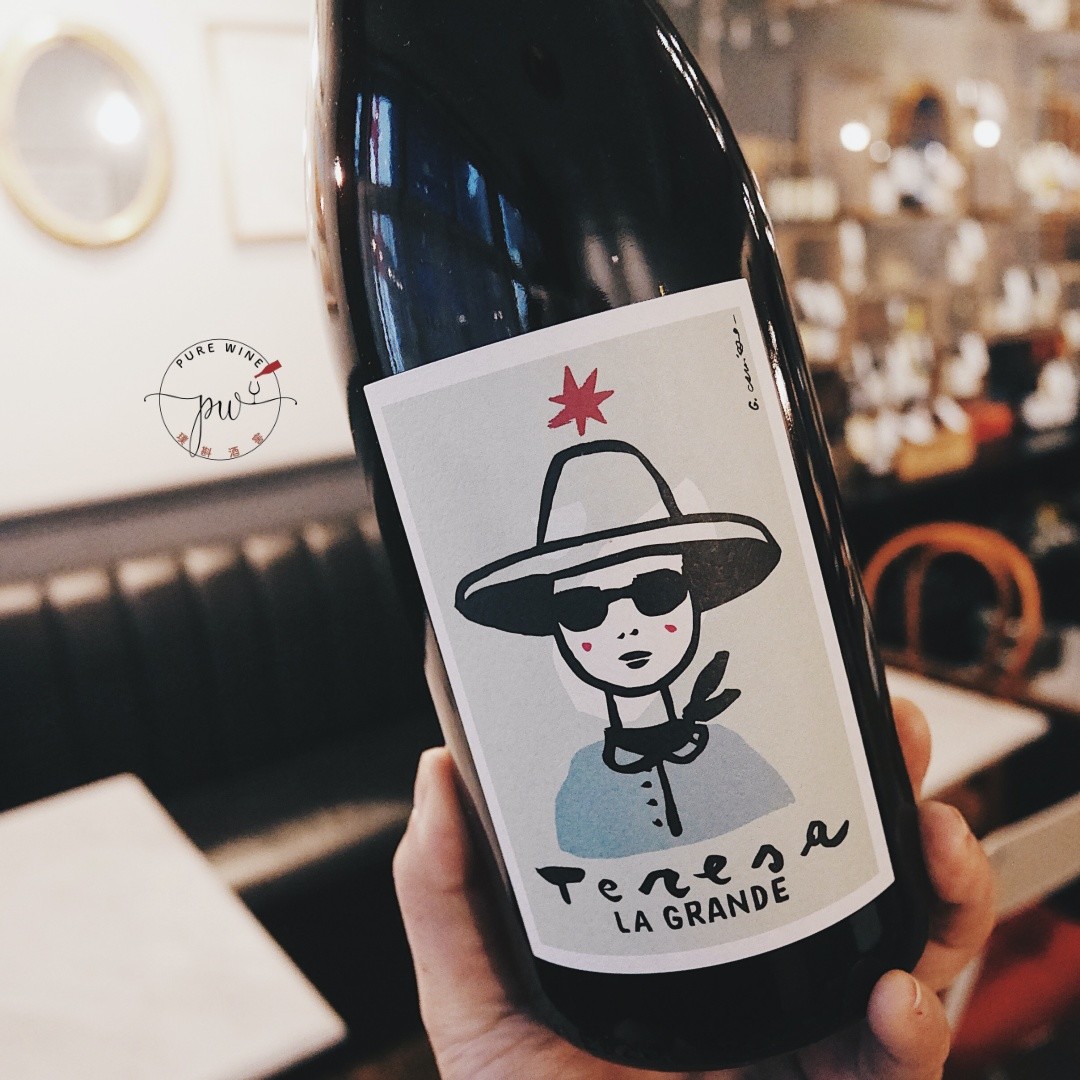 萄樹的果,手工採收後,全去梗,在不鏽鋼槽內低溫泡皮發酵2個月,再移到大橡木桶中培醞12個月後裝瓶。酒標是以媽媽Teresa日常最愛的穿著來設計(帽子、墨鏡、絲巾),再搭配媽媽最愛的青綠色底。