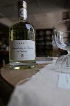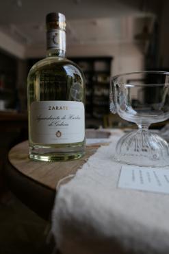 Zarate為要保有天然,只取有機的15種乾燥香料如八角、豆蔻、茴香、胡椒、乾燥羅勒、肉桂、菊花、橙花等香料,最後的色澤則以昂貴的番紅花點色,故色澤不如市售的果渣白蘭地來的金黃,但反而有著最天然淡雅的草綠色澤,如長期曝曬在陽光下這樣的草綠色則會漸漸呈現透明無色,證實完全純天然的蒸餾釀造,這是Zarate手工果渣白蘭地最特殊珍貴之處。