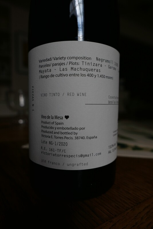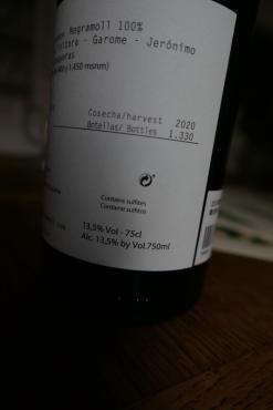 Negramoll(Tinta Negra)藤齡30~120年,生長於火山砂質土壤。此品種原為馬德拉酒(Madeira) 的基礎品種,在Canary Island廣為種植,於La Palma 是常見的釀酒品種,據傳該品種起源自Andalucia,稱為Mollar Cano。手摘採收,共耗時2個月,天然酵母於不銹鋼槽裡發酵,其中3成採用整株發酵。分別使用美國橡木桶、舊栗子桶釀造,並於600公升中性法國桶與美國橡木桶內進行培養,酒渣浸漬10個月。